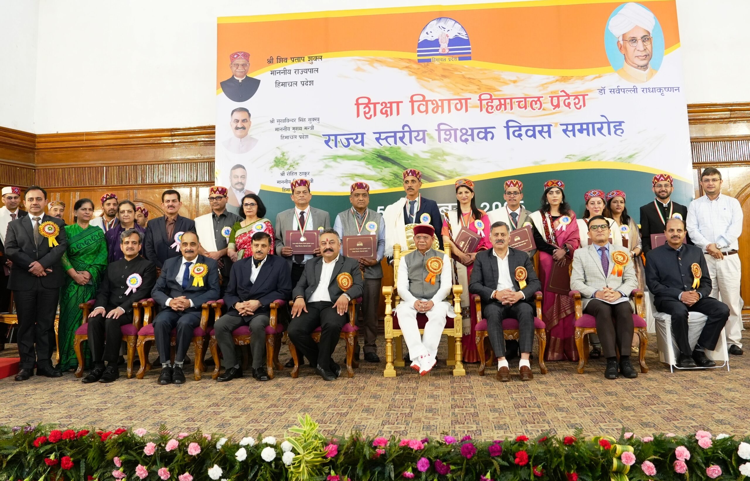 शिमला, 5 सितंबर। शिक्षक दिवस के अवसर पर राज्यपाल शिव प्रताप शुक्ल ने आज शिमला में आयोजित राज्य स्तरीय समारोह में 19 शिक्षकों को राज्य पुरस्कार से सम्मानित किया। प्रदेश के एक शिक्षक को वर्ष 2024 के लिए राष्ट्रीय पुरस्कार से अलंकृत किया गया है। इस वर्ष पहली बार महाविद्यालयों और तकनीकी शिक्षा संस्थानों के 19 शिक्षकों को उत्कृष्टता प्रमाण-पत्र के साथ पुरस्कार भी प्रदान किए गए।