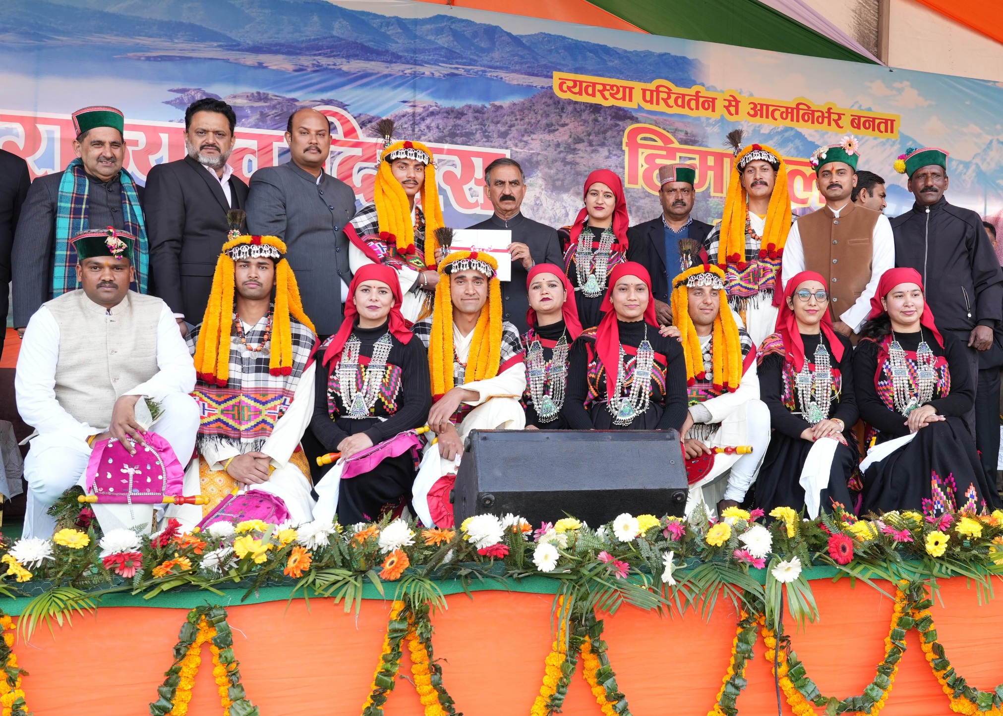 प्रागपुर, 25 जनवरी। मुख्यमंत्री ठाकुर सुखविन्द्र सिंह सुक्खू ने रविवार को कांगड़ा जिले के प्रागपुर में आयोजित 56वें पूर्ण राज्यत्व दिवस समारोह के दौरान हिमाचल प्रदेश के लोगों को शुभकामनाएं दीं। यह प्रागपुर में आयोजित पहला समारोह था। मुख्यमंत्री ने राष्ट्रीय ध्वज फहराया और परेड टुकड़ियों से सलामी ली। परेड का नेतृत्व परेड कमांडर आईपीएस अधिकारी तरुणा ने किया। परेड में आईआरबीएन जंगलबैरी, आईआरबीएन सकोह, आईआरबीएन पंडोह, पुलिस जिला नूरपुर, होमगार्ड महिला बटालियन धर्मशाला, होमगार्ड पुरुष और महिला बटालियन धर्मशाला, एसडीआरएफ पंडोह, धर्मशाला ट्रैफिक पुलिस, वन मित्र, एनसीसी राजकीय महाविद्यालय ढलियारा, स्काउट्स एंड गाइड्स और अन्य इकाइयों ने भाग लिया।
